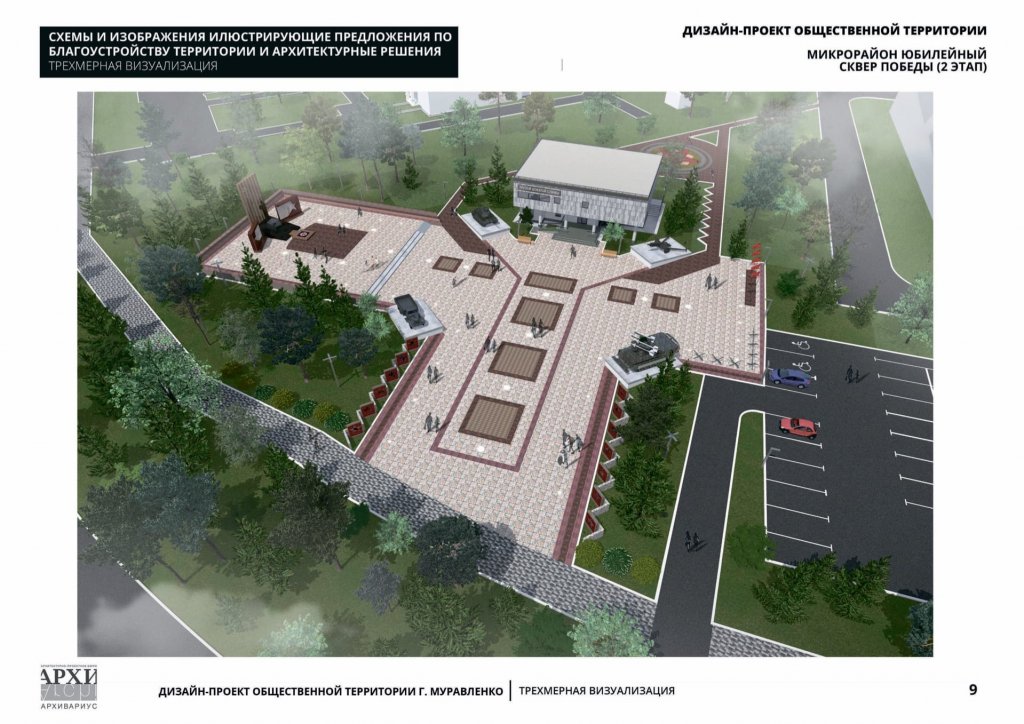 В 2022 году планируется провести второй этап реконструкции общественной территории. Разработан дизайн-проект по благоустройству части сквера, который располагается между зданием ЗАГСа и улицей Ленина, в районе памятника «Всем убиенным от благодарных живых». Сквер разделяется на функциональные зоны: мемориальную, парковочную, озелененную и прогулочную. Проектом предусмотрены организация площади для проведения мероприятий, размещение военной техники на специальных постаментах, формирование разноуровневого ландшафтного освещения, установка стендов с городами-героями, организация мемориальной площади с Вечным огнем, памятником Воину-Освободителю, симметрично расположенными гранитными стенами, с фотографиями героев «Бессмертного полка» и мемориальной стеной, которая гармонично завершит композицию. Этот проект сейчас является лидером голосования. Его поддержали больше двух тысяч пользователей.