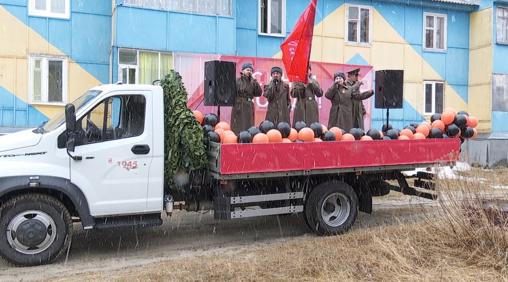 Так в Муравленко встречают 76-ю годовщину Победы в Великой Отечественной войне. С праздником руководство города и фронтовая бригада артистов поздравляют тружеников тыла, жителей блокадного Ленинграда и тех, кто тогда, в далёкие сороковые, приближал победу.