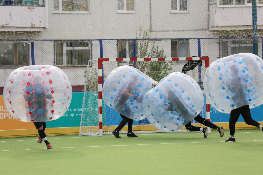 Муравленковцы сыграли в футбол в надувных шарах. Бампербол - достаточно новый вид состязаний, уже успевший полюбиться горожанам. В прошедшем турнире участвовало 8 команд, по 4 игрока в каждой.