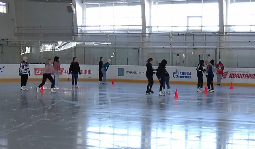 Студентки многопрофильного колледжа отметили наступающий праздник необычным способом. Для девушек провели урок физкультуры на льду спортивной школы «Арктика».