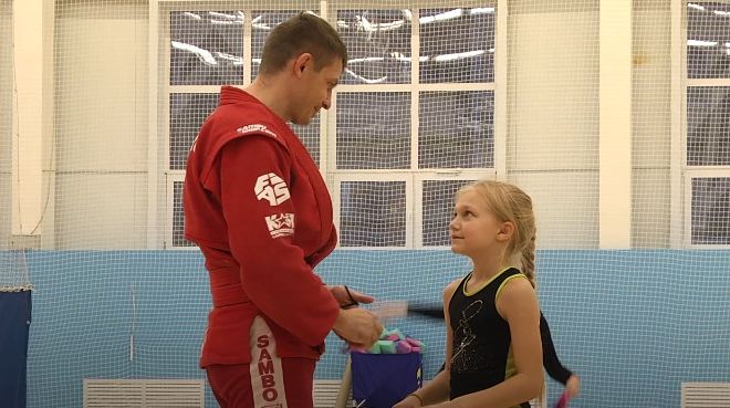 Мама, папа, я – спортивная семья! Это всё о семье восьмилетней Ани Репушко. Оба ее родителя – тренеры, мастера спорта. Мама – Екатерина Варлакова – профессиональная гимнастка, папа – самбист. Пока Аня оттачивает мастерство на тренировках по художественной гимнастике, папа обучает юных муравленковцев самбо. И как в нем только уживается вся эта тренерская строгость и родительский трепет к своему ребенку?
