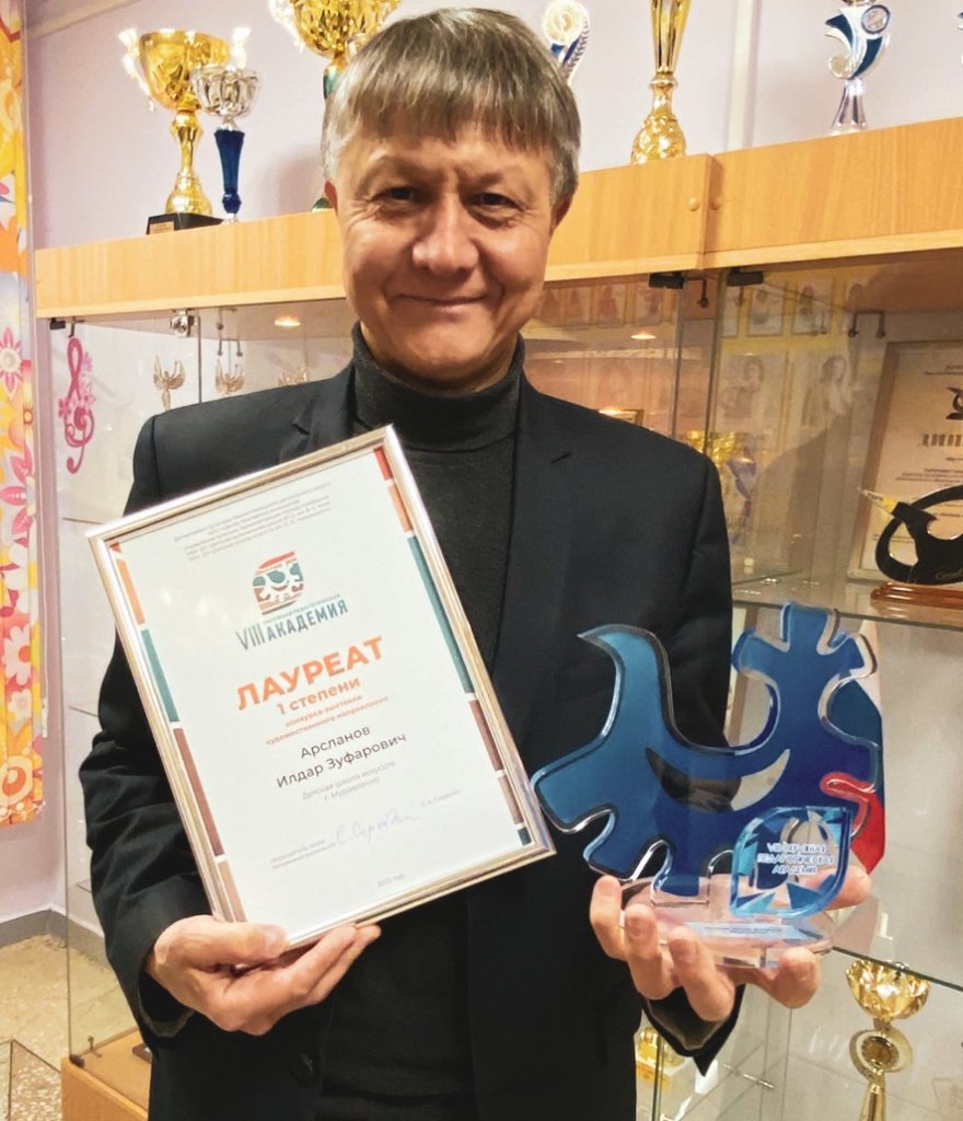 Педагоги художественного направления прошли мастер-классы по графическому дизайну и академической живописи под руководством заслуженного художника России Сергея Сиренко. Они представили свои работы на конкурсе-выставке. Наши преподаватели вошли в число лауреатов. Дипломами первой степени награждены педагог художественной школы Нурия Садриева, а также преподаватель школы искусств Илдар Арсланов. Второе место занял Артур Ахмедшин – из ДШИ.