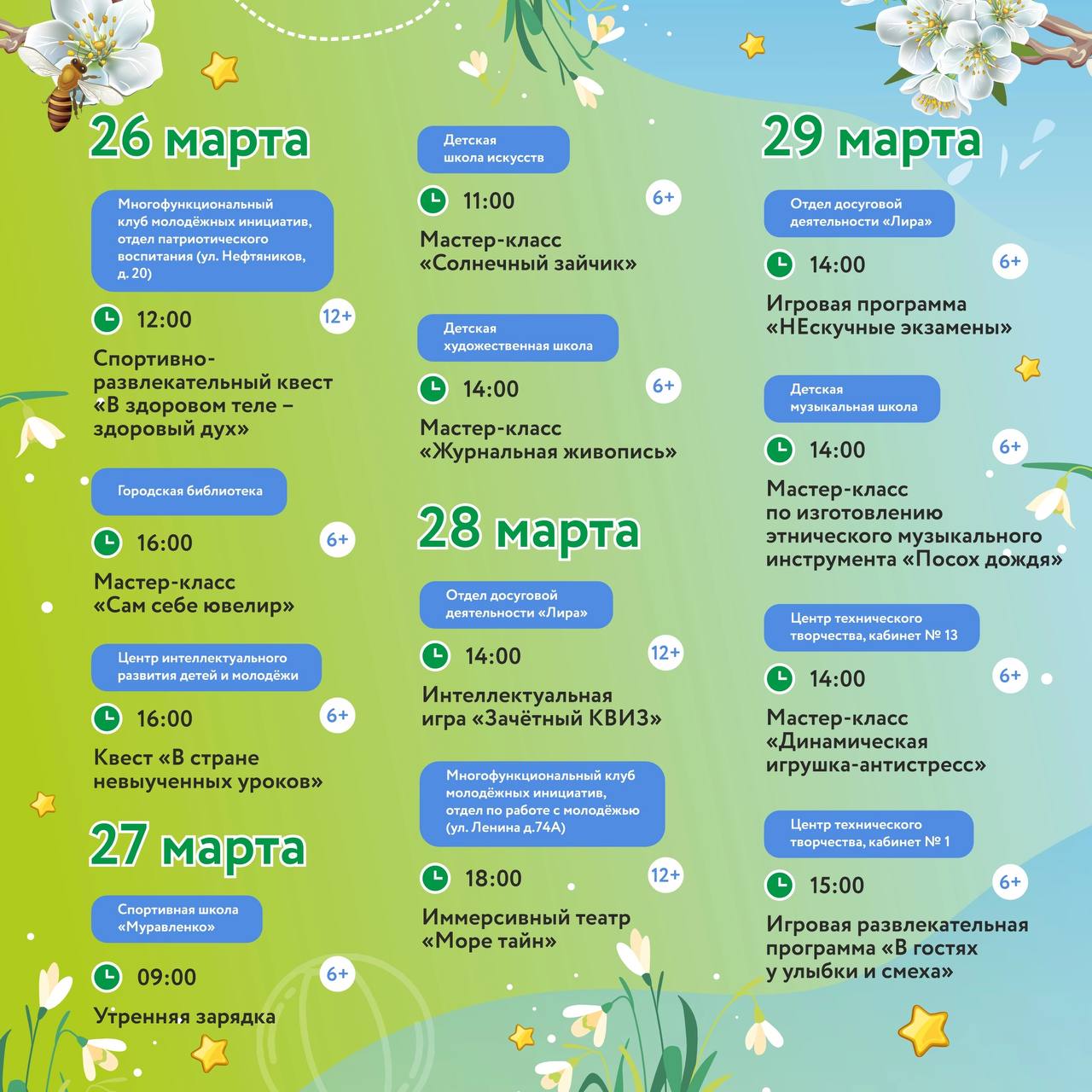 «Зачётная весна» – под таким названием в Муравленко пройдет очередной сезон проекта «PRO-каникулы». Для юных горожан будут организованы различные мероприятия.