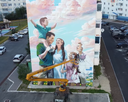 АЛЕКСАНДР ПОМАЗКОВ, художник: «На мурале будет изображена семья многодетная, которая просто радуется совместной жизни, играм, провождению времени вместе, просто каким-то мелочам. Конечно, приятно, что кому-то это доставит положительных, надеюсь, эмоций».