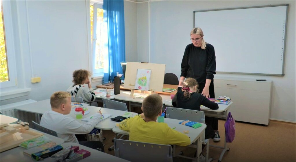 У юных художников занятие по акварели. Дети с головой погружаются в творческий процесс. Занимаются уже третий год, и школа для них стала вторым домом.