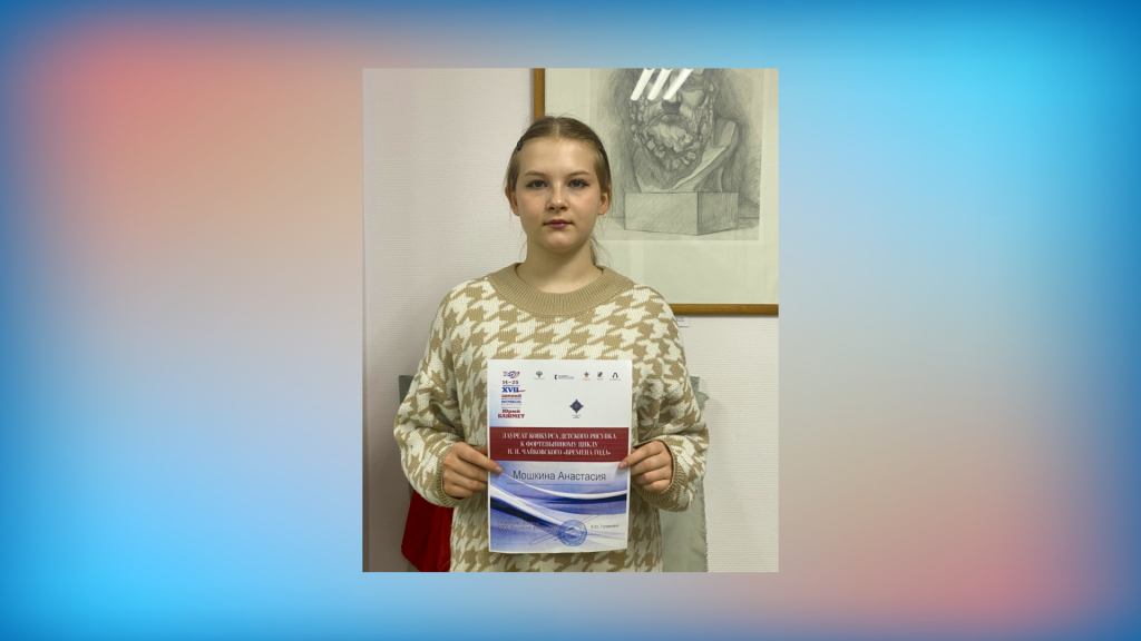 Участникам необходимо было нарисовать иллюстрации к циклу «Времена года» одного из величайших композиторов Петра Чайковского. Жюри назвали авторов 30 лучших работ. Среди них воспитанница Детской школы искусств отделения изобразительного искусства Анастасия Мошкина. Юная художница награждена дипломом лауреата. Занимается девушка у преподавателя Люции Фасхиевой.