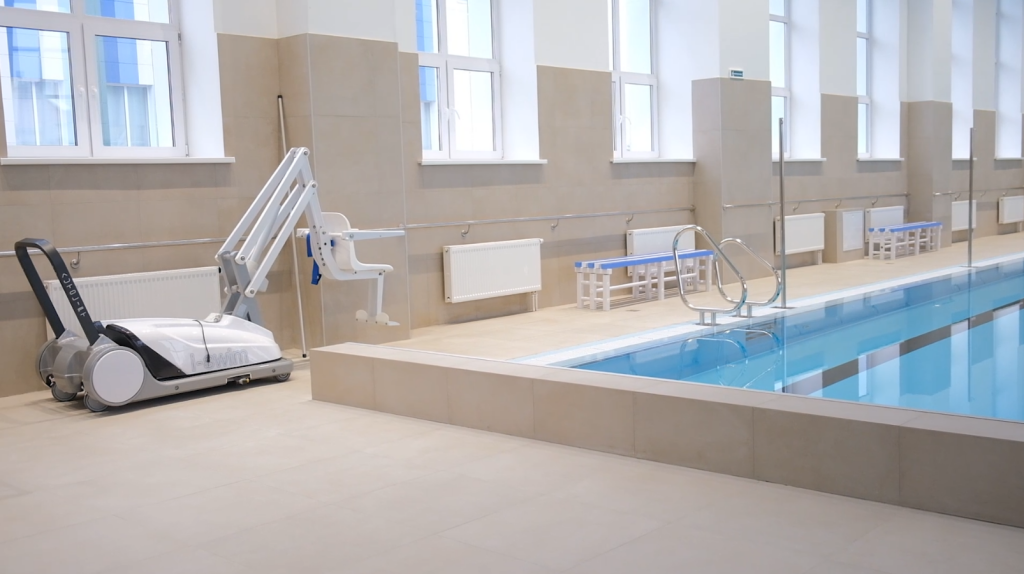 На каждом этаже здания произведена беспороговая укладка плитки. В соответствии с современными нормами оборудованы и санитарные комнаты. А чтобы существенно упростить подъем инвалидов-колясочников на сцену, в актовом зале установлен специальный подъемник. Для слабовидящих и слепых посетителей новой школы путь следования в тот или иной кабинет обозначен тактильными напольными лентами.