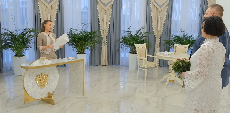 ТАТЬЯНА БЕНГАРДТ, начальник отдела ЗАГС: «Этот год, 2024-й, нашим президентом объявлен Годом семьи, а губернаторам нашего округа объявлен Годом детства. И мы много провели мероприятий с семьями, многодетными семьями. Чествовали юбиляров супружеской жизни. Ну и, наверное, особенно запомнится этот год в нашем отделе необычными выездными регистрациями, которые прошли к Дню семьи, любви и верности».