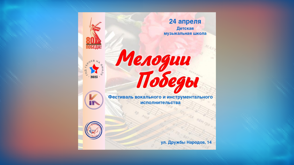 «Мелодии Победы» – под таким названием в Муравленко пройдет музыкальный праздник, посвященный памяти героев и событиям, которые навсегда останутся в истории страны. Фестиваль приурочен к 80-летию Победы в Великой Отечественной войне.