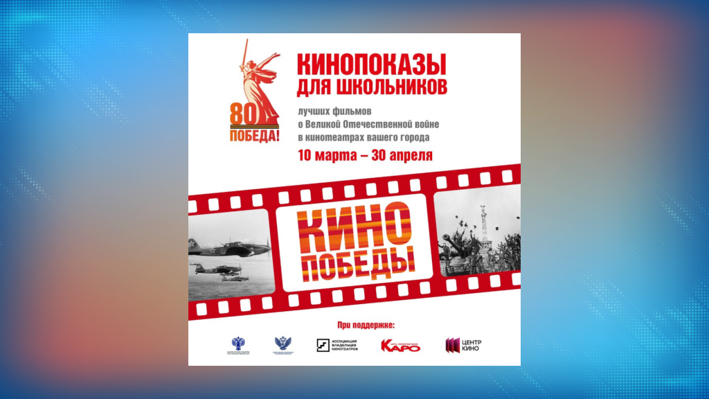 Школьники смогут бесплатно посмотреть художественные и документальные фильмы о Великой Отечественной войне – картины, рассказывающие о мужестве, подвиге и памяти. В репертуаре – легендарные произведения отечественного кинематографа, формирующие уважение к героическому прошлому нашей страны.
