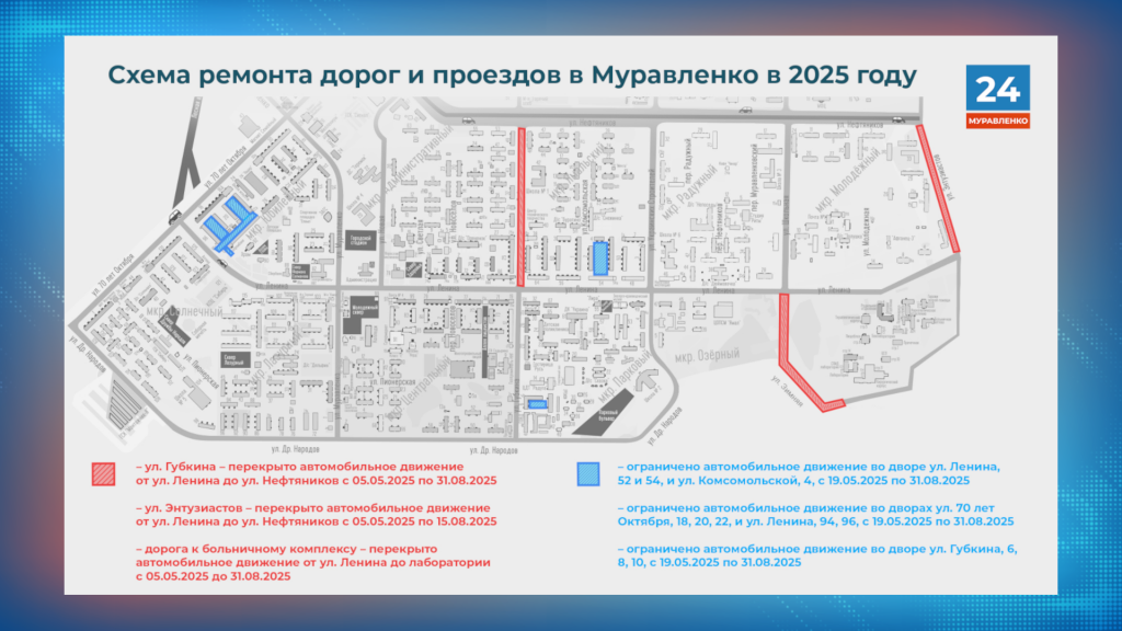 А с 19 мая будет ограничено автомобильное движение по внутриквартальным проездам в трех микрорайонах: Ямальском, Юбилейном и Парковом.