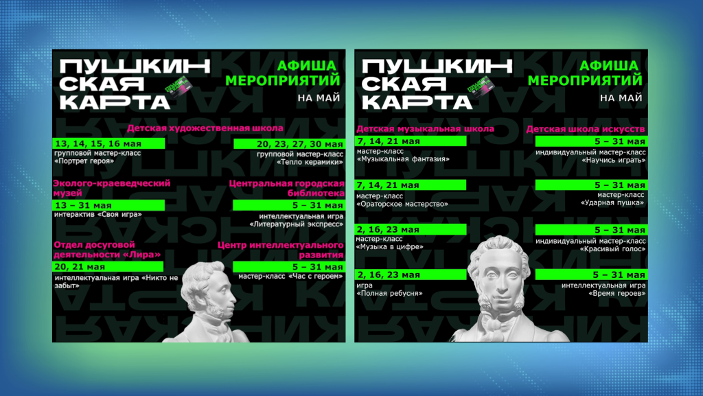 Жители Муравленко могут посетить культурные мероприятия по Пушкинской карте. В мае горожан готовы принять семь учреждений.